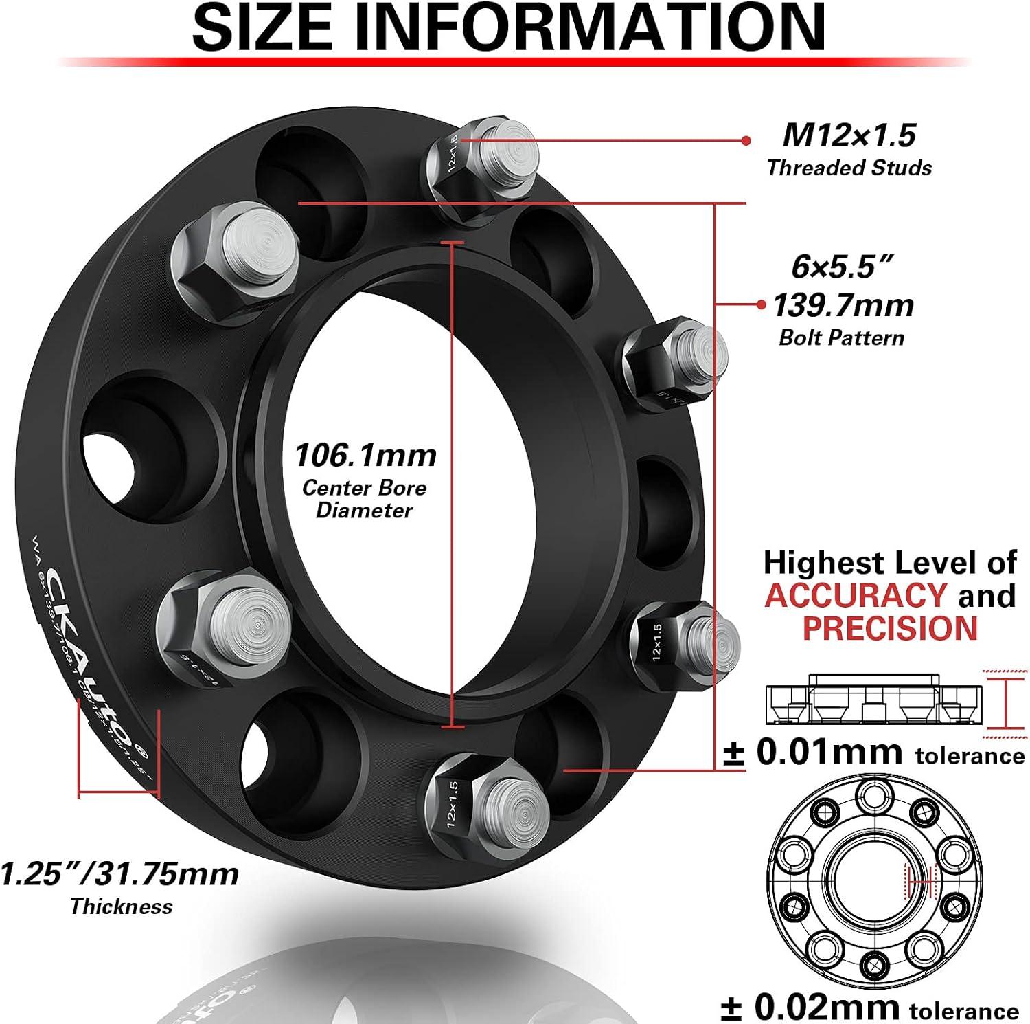 CKAuto 2 Pack 6×5.5 Hub Centric Wheel Spacers, 1.50″ 6×139.7mm Wheel Spacers, 106.1mm Center Bore with M12x1.5 Studs(1.25” Thick / 4 pack)