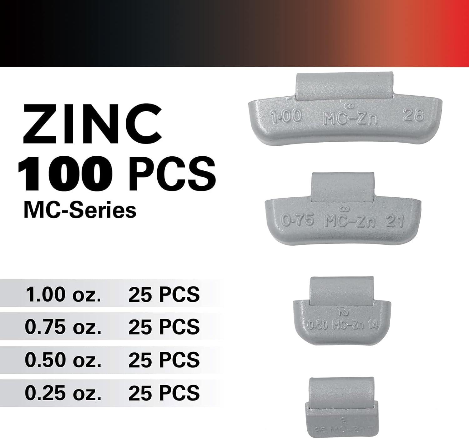 CKAuto MC Series Zinc Clip on Wheel Weights 1.25oz, Coated, 25Pcs/Box Fit for Steel Wheel Black(black)