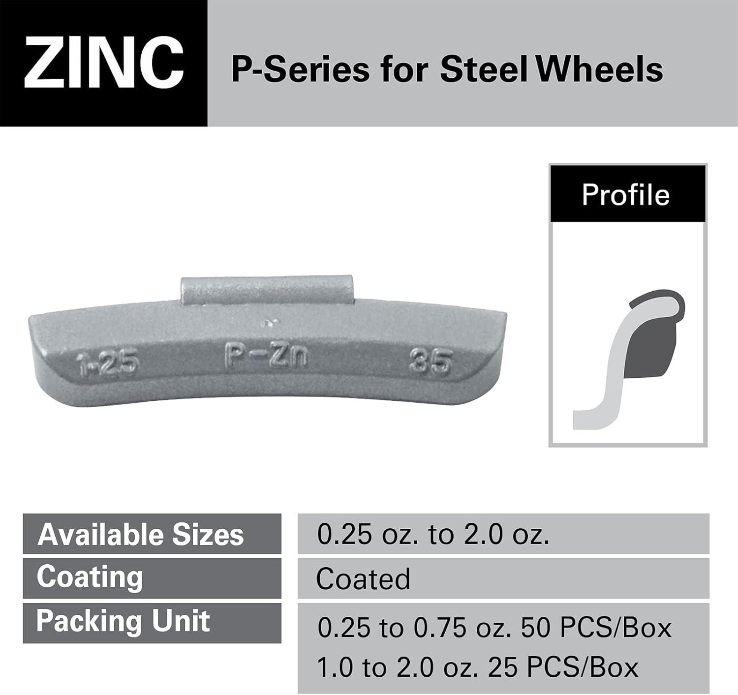 Specification: P type, Zinc clip on wheel weights, 3/4oz, 0.75oz, total 50pcs per box, Coated